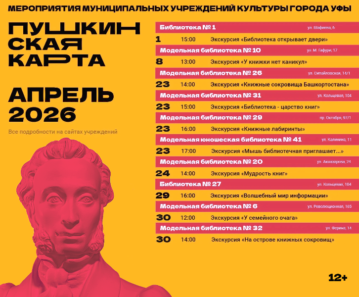 Библиотеки Уфы приглашают вас на экскурсии в рамках проекта «Пушкинская карта»! | 15.04.2026 |