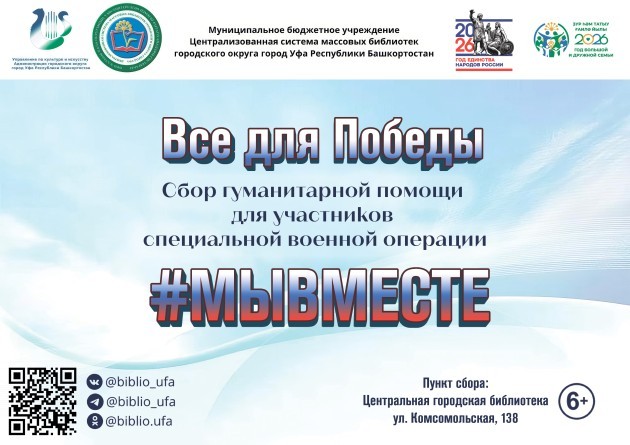 Массовые библиотеки Уфы проводят сбор гуманитарной помощи под лозунгом «Всё для Победы!» | 14.04.2026 |