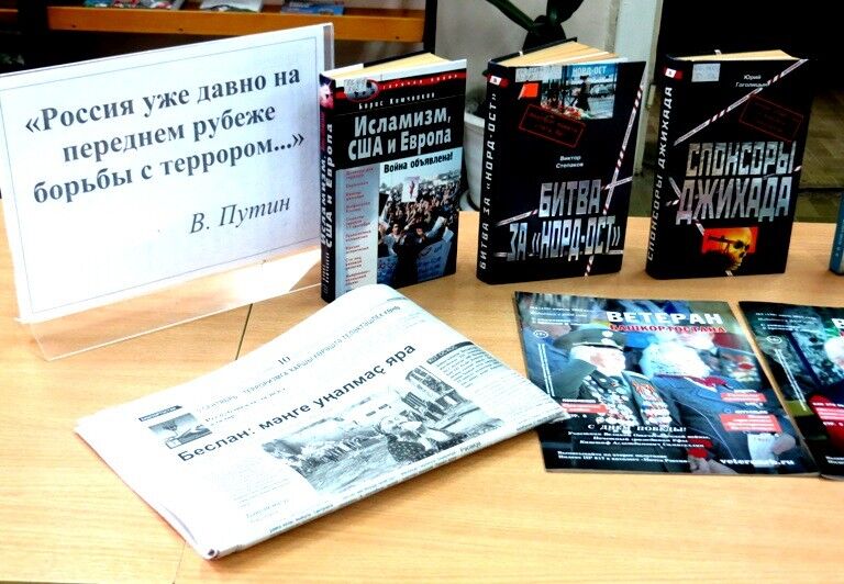 В рамках Дня солидарности в борьбе с терроризмом, 3 сентября в библиотеке был организован тематический просмотр антиэкстремистской литературы под названием "Помни Беслан" и антитеррористический час для читателей "Терроризму - Нет!", посвященный трагическим событиям, произошедшим в первые сентябрьские дни 2004 года в г. Беслане. Терроризм это - угроза обществу, то есть угроза людям, это идеология насилия и практика воздействия на общественное сознание, на принятие решений органами государственной власти, органами местного самоуправления или международными организациями. Террорист это, тот человек, который применяет насилие для устрашения и убеждения кого либо. Любой террористический акт, война — это боль, слезы, горечь. Это страшное потрясение для здравомыслящего человека. Страдают ни в чем неповинные люди. Погибают дети. В первые сентябрьские дни в школе №1 г. Беслана террористы удерживали 1128 заложников. Погибло свыше 350 человек. Ранено около 500 человек. Из них 186 детей. Самому маленькому из погибших исполнилось 6 месяцев. Это Норд-ост , взрывы в аэропорту, взрывы в московском метро, покушения, террористический акт во Владикавказе, террористический акт в Ставрополе, террористический акт в Кизляре - это очень серьёзно и самое главное – страшно. Часто взрывные устройства подбрасывают в различных пакетах. Поэтому увидев лежащий бесхозный пакет, нельзя его поднимать, а надо сообщить об этом службе безопасности. В современном мире высоких технологий и всеобщей интеграции невозможна борьба с терроризмом каждой страной по отдельности. Нужна коалиция всех стран, заинтересованных в уничтожении этого феномена. Удар должен быть нанесен точечный и сразу по всем направлениям деятельности террористов, причем этот удар обязан состоять не только из военных мер, но и экономических, политических. Вопрос состоит не только в том, чтобы уничтожить военные подразделения бандитов, но и в перекрытии финансовых подпиток этих людей, а также необходимо создать условия, при которых не будут появляться новые террористы. Объяснение столь радикальных мер следующее: если прекратить деятельность военных подразделений, но оставить финансовые источники бандитов – появятся новые люди, готовые умирать потому, что за это платят. Обязательно нужно создать новые рабочие места в районах сосредоточения ячеек террористов и территориях набора наемников, воюющих в других государствах. Если это будет сделано, то в организациях экстремистского толка не будет появляться такого числа кадров, хотя существуют фанатики, борющиеся неизвестно за что. Немаловажной частью борьбы является информационная война, победа в которой может принести значительную часть успеха во всей операции, а поражение может свести на нет успехи в других направлениях. Для удачной борьбы необходим удар и по преступности, потому что террористы имеют доход с продажи наркотических средств и оружия. Для успешной борьбы с терроризмом нужно уничтожать не только организации экстремистского толка, но и преступность, т. е. вести войну против всего мирового зла в целом. Хочется верить в то, что больше угрозы от террора не будет нигде, что мы больше не услышим взрывов, выстрелов, что больше никто никогда не будет никого захватывать. Всё остановить, предотвратить мы можем только тогда, когда все объедин