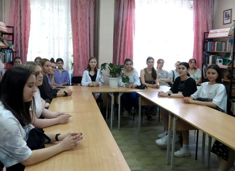 В рамках проекта «Пушкинская карта» 2 июня в библиотеке состоялась экскурсия «К истокам народов через библиотеку» для студентов 1 курса Уфимского торгово-экономического колледжа. Ребята познакомились с многоязычной литературой народов республики, с книжной выставкой «Дорогами дружбы», с выставкой национальных костюмов народов Башкортостана, изучили функции библиотечных каталогов и картотек. Заведующая библиотекой Абдеева Роза Раисовна рассказала студентам о залах библиотеки, об истории создания альбомов «Летопись дружбы», «Филателия народов мира и РБ», «Дружба опаленные войной», «Маршалы Победы», «История Уфы в лицах», о мероприятиях, проводимых в залах библиотеки. Студенты проявили большой интерес к деятельности библиотеки, подходили к выставкам, познакомились с художественной и отраслевой литературой. |