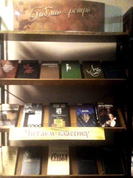 4 декабря в Зале художественной литературы библиотеки была организована книжная выставка «Библио-ретро: любимые книги». На этой выставке гости библиотеки могли познакомиться с познавательными и интересными книгами из фонда библиотеки 1970-1980 годов. Например, книги таких авторов как М. Рощин, Ю. Семенов, П. Проскурин, Ю. Герман, Д. Гранин, И. Ефремов, Ч. Айтматов, А. Адамович, Л. Леонов, Г. Бакланов и др.