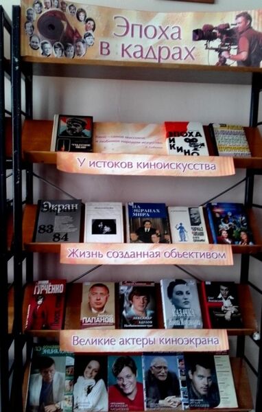 29 августа в библиотеке была оформлена книжная выставка «Эпоха в кадрах». Выставка состоит из разделов: “У истоков киноискусства”, “Жизнь созданная объективом”, “Великие актеры киноэкрана”. На выставке представлена книга выдающегося советского кинорежиссера, народного артиста СССР Григория Александрова “Эпоха и кино”. Читателей ждет увлекательное путешествие в историю нашего кино, они узнают о первых шагах советского кино, о расцвете отечественного киноискусства, о прославленных актёрах киноэкрана, с которыми автор работал или встречался. Большой интерес у читателей может вызвать книга “Звезды нашего кино” из серии “Выдающиеся мастера”, где рассказывается о таких известных актерах как Владимир Гостюхин, Рената Литвинова, Сергей Бодров, Нина Усатова, Алексей Петренко, Лидия Федосеева-Шукшина, Нина Русланова, Юрий Назаров, Виктор Сухоруков и др. Раздел “Великие актеры киноэкрана” посвящен творчеству великих актеров театра и кино: Александра Абдулова, Олега Янковского, Нонны Мордюковой, Анатолия Папанова, Людмилы Гурченко. |