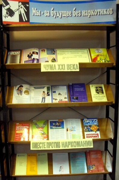 Мы - за жизнь без наркотиков! Сколько бы мы не говорили «о болезни века», число употребляющих наркотических средств не уменьшается, все большее распространение получают различные виды наркомании: курение, алкоголизм, употребление наркотиков. Этому способствуют недостатки воспитания, бездуховность, отсутствие установок, неумение с пользой организовать свой досуг. 11 апреля в библиотеке была организована книжная выставка «Мы - за будущее без наркотиков». Цель - сформировать у молодежи негативное отношение к наркомании, убедить, что наркомания - страшная болезнь, а не веселое времяпрепровождение; пропаганда здорового образа жизни; привитие бережного отношения к собственному здоровью. Много полезных и важных сведений узнали посетители библиотеки, обратившись к этой выставке. Например, как действуют на организм наркотические вещества, как попадаются юноши и девушки в сети «добытчиков», которые вовлекают их в свою ловушку и многое другое. Наше самое доброе пожелание: пусть число больных наркоманией не увеличится ни на одного человека! Наше здоровье - это здоровье будущей семьи, нашего рода. Помните: наркотики - гибель, мученическая смерть! |