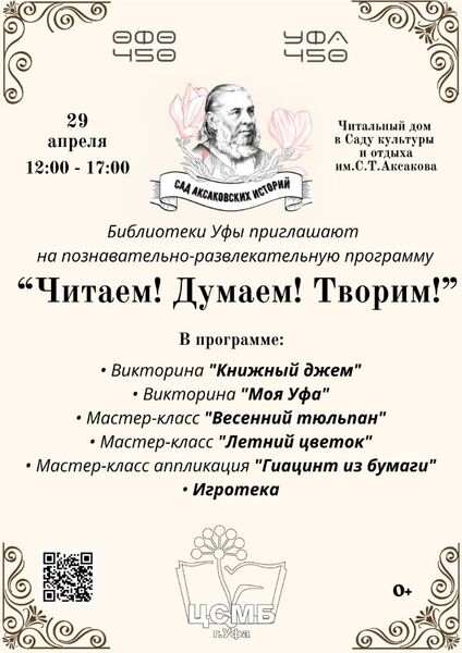 Массовые библиотеки Уфы приглашают в «Читальный дом» Сада культуры и отдыха имени С. Т. Аксакова29 и 30 апреля 2024 года, в рамках проекта «Сад Аксаковских историй», Централизованная система массовых библиотек приглашает уфимцев и гостей города в Сад культуры и отдыха имени С. Т. Аксакова на познавательно - развлекательную программу «Читаем! Думаем! Творим!». В эти дни посетители «Читального дома» смогут стать участниками познавательных викторин и занимательных мастер-классов. 29 апреля для вас: - Викторина «Книжный джем»; - Викторина «Моя Уфа»; - Мастер-класс «Весенний тюльпан»; - Мастер-класс «Летний цветок»; - Мастер-класс аппликация «Гиацинт из бумаги». 30 апреля гостей ждут: - Викторина «Сказочный мяч»; - Викторина «Соседи по планете»; - Литературный дартс «Весенний калейдоскоп»; - Мастер-класс к 1 Мая «Цветик - семицветик»; - Мастер-класс «Гуттаперчевая гусеница»; - Мастер-класс книжная закладка «Подарок книге». Для вас разнообразие настольных игр на любой вкус и возраст. Ждем всех желающих с 12:00 до 17:00 часов по адресу: ул. Пушкина, 112. Категория 0+. Приглашаем всех в «Читальный дом»! Приходите всей семьей и проведите выходные с пользой! |