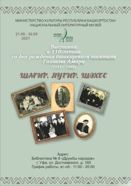 Библиотеки и музеи постоянно напоминают и рассказывают нам о личностях, чьи труды играли немаловажную роль в становлении башкирской литературы, чьи труды помогали многим найти свою дорогу. В библиотеке № 8 «Дружбы народов» г. Уфы с 21 сентября работает выставка «Поэт. Воин. Личность» («Шағир. Яугир. Шәхес») Национального литературного музея Республики Башкортостан. Она посвящена 110-летию со дня рождения башкирского советского писателя, журналиста, общественного деятеля, участника ВОВ Гайнана Амири (Гайнана Гимазетдиновича Амирова). На ней представлены фотографии писателя, его личные вещи, книги. Гайнан Амири - участник Сталинградской битвы, битвы на Курской дуге, на Днепре. Начал печататься с 17 лет и за время своего творчества проявил себя как поэт, драматург, литературовед, публицист. Поэма «Униженный Шамсутдин и Нуретдин без трудодней», рассказы «Золото», «Две любви», им созданные песни «Песня батыров», «Мой гнедой» поражают своих читателей душевностью, патриотизмом, народностью. Выставка- инсталляция представляет собой архив фотографий с кем он работал плечом к плечу, кому он был наставником, соратником по перу. Его настольная лампа и пишущая машинка напоминают нам о далеких днях знаменитого писателя, где он кровью и потом сковал нам счастливую жизнь. К сожалению, книг Гайнана Амири в фонде библиотеки очень мало, его произведения можно найти, в основном, только в сборниках. |