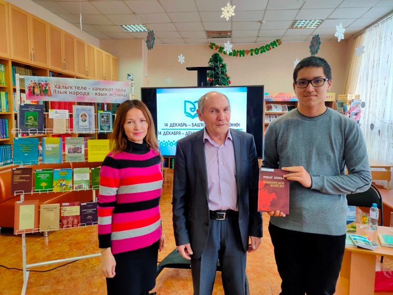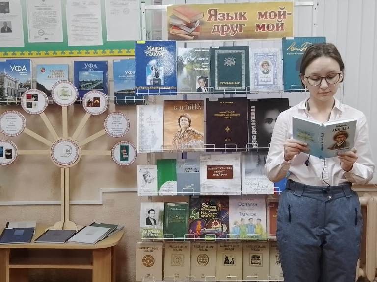 В массовых библиотеках Уфы прошел фестиваль «БашкортFest» 14 декабря в Башкортостане отмечается День башкирского языка. Основная тема мероприятий – наследие поэта и просветителя Мифтахетдина Акмуллы. Централизованная система массовых библиотек ГО г. Уфа РБ посвятила празднику фестиваль «БашкортFest». Главное событие года прошло в стенах Центральной городской библиотеки, Модельных библиотек № 4, 10, 13, 26, а также библиотек № 1, 8 и 46. Цель фестиваля - продвижение и популяризация башкирского языка. Уфимские книгочеи и гости столицы стали участниками флешмобов, литературно-поэтических вечеров, краеведческих часов и других мероприятий. Так, в Центральной городской библиотеке г. Уфы прошла встреча с известным писателем, прозаиком, Лауреатом Государственной премии им. С. Юлаева, Членом Союза писателей Республики Башкортостан, Заслуженным работником культуры Республики Башкортостан Ринатом Камалом, который уже много лет радует своим неповторимым творчеством и является частым гостем краеведческого зала библиотеки. Познакомиться с творчеством именитого земляка пришли студенты Уфимского автотранспортного колледжа. Библиотекарь Юлия Садриева рассказала молодым людям о жизни и творчестве Рината Камала и представила книги писателя из фонда краеведческого зала. Студенты прослушали стихотворение Зайнаб Биишевой «Башкирский язык» на родном языке в исполнении библиотекаря Зили Ишмухаметовой. Познакомились с двумя новыми книгами Рината Камала «Время Камала», «Курай», выпущенными в 2022 г.. Молодые люди с интересом слушали Рината Альтафовича и задавали вопросы. Отвечая на вопросы о своем творческом пути, писатель прочел свои любимые стихи из поэзии Рами Гарипова и Баязита Бикбая на башкирском языке. Фонд редких книг Центральной городской библиотеки пополнился еще двумя книгами с автографом автора. В экспозицию книжной выставки «В языке – судьба народа» вошли книги, посвященные родному языку, языкознанию, развитию языков народов Республики Башкортостан из фонда краеведческого зала библиотеки. Литературный вечер на башкирском языке «Акмулла - зеркало души», посвященный 191-летию Мифтахетдина Акмуллы, прошел в Библиотеке № 8. Участниками информационного часа «Язык – есть исповедь народа» Библиотеки № 1 стали учащиеся 4 класса МАОУ «Центр образования № 40 с углубленным изучением отдельных предметов» имени Героя Российской Федерации М.В. Серафимова. Библиограф познакомила ребят с биографией и творческим наследием великого просветителя Мифтахетдина Акмуллы, дошедшим до наших дней. Прозвучало знаменитое стихотворение «Башкиры мои, нужно учиться!» на башкирском и русском языках, были приведены интересные факты из жизни, продемонстрирован онлайн - лекторий «Светоч башкирской поэзии». В Модельной библиотеке № 10 прошел краеведческий час «Слово - родник духовности». Гостями мероприятия стали учащиеся 6 класса МАОУ «Центр образования» № 35. Имена таких мастеров слова как Мифтахетдин Акмулла, Мустай Карим и Мажит Гафури - это история литературы республики. Ведущая рассказала учащимся о праздновании Дня башкирского языка в нашей столице и о значении их творчества. Ребята стали активными участниками познавательной викторины, отвечали на вопросы о родном крае, родном языке и творчестве поэтов. Книжная выставка «Родной язык, как ты пре
